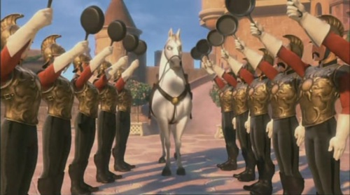 O sol de Corona assim com é conhecido, se você reparar podemos ver este sol por vários lugares no reino até no fardamento dos guardas. Este é outro detalhe que eu gostei muito pós das filme, desenho ou série cada reino tem o fardamento diferente da guarda real, assim como acontece na vida real.